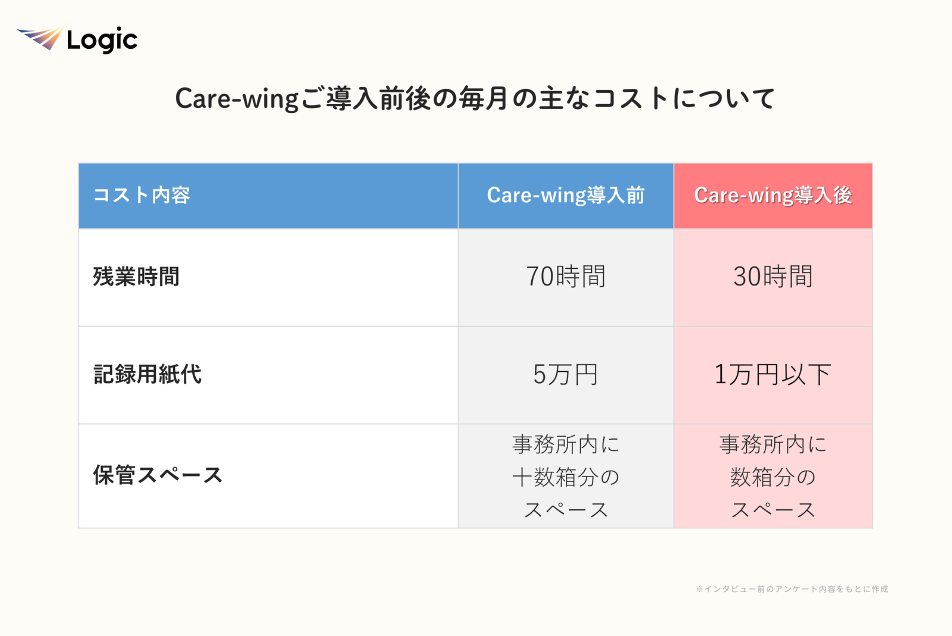 Care-wingを利用したことで、どれくらいコスト削減につながりましたか?