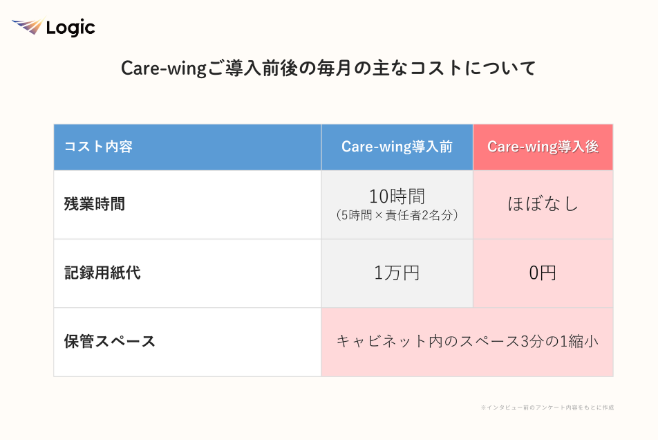 一方、Care-wingを導入したことで必要となった