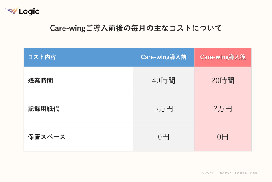 Care-wing導入前後の比較表
