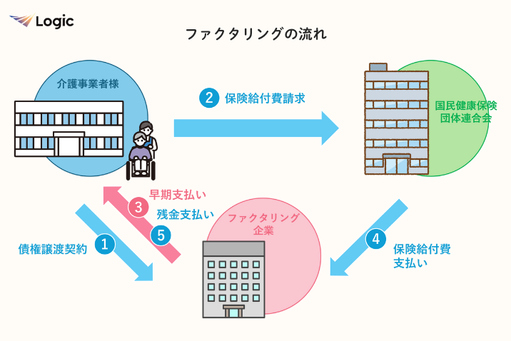 「ファクタリング」とは、簡単に言えば“売掛金を現金化する仕組み”です。 介護事業所がサービス提供後に請求する「介護報酬」は、国民健康保険団体連合会(国保連)から入金されるまでにタイムラグがあります。