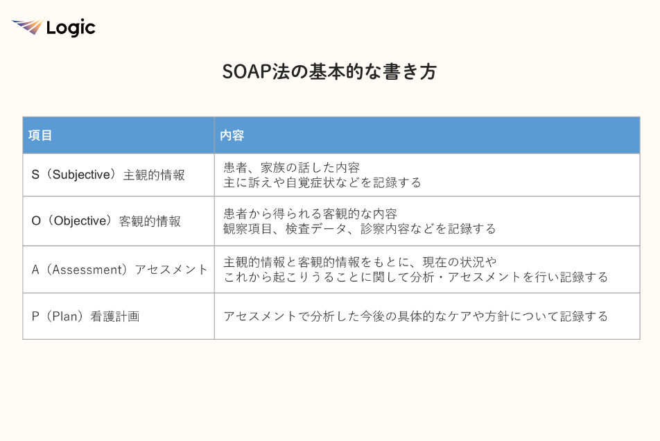 SOAP法とは、情報を整理し、問題解決を導くための記録法です。
