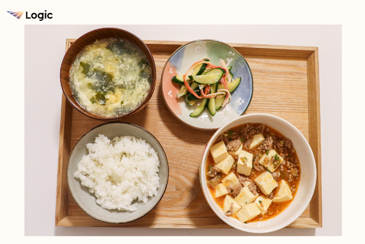 主菜の麻婆豆腐は豚ひき肉と豆腐でタンパク質を確保し、とろみもついているため食べやすい一品です。