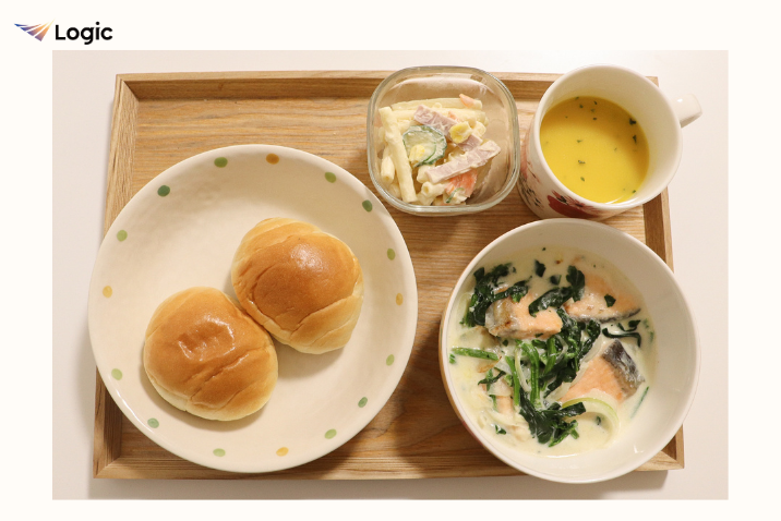 主食: パン(柔らかい食パンやロールパン)、またはご飯