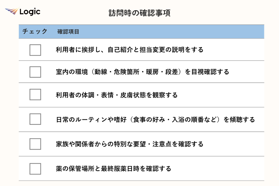 訪問時の確認事項
