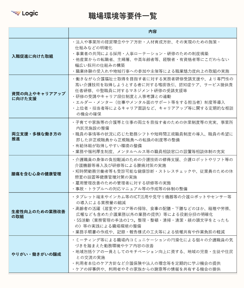 介護職員等特定処遇改善加算の要件は以下の通りです。